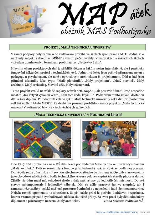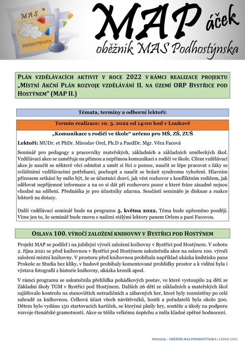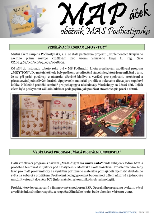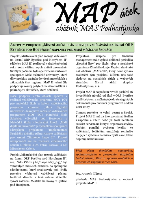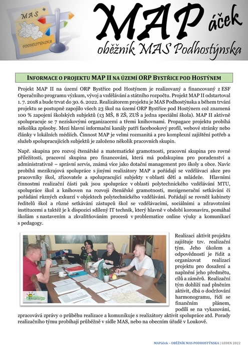 INFORMACE O PROJEKTU MAP II NA ÚZEMÍ ORP BYSTŘICE POD HOSTÝNEM - MAPáček- Oběžník MAS Podhostýnska,z.s.