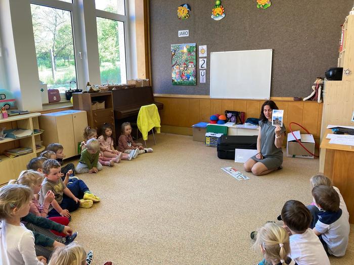 Dne 13. května 2025 zavítala do MŠ Osíčko paní lektorka z Malé technické univerzity, která měla pro děti připravenou lekci ,,Stavitel mostů".