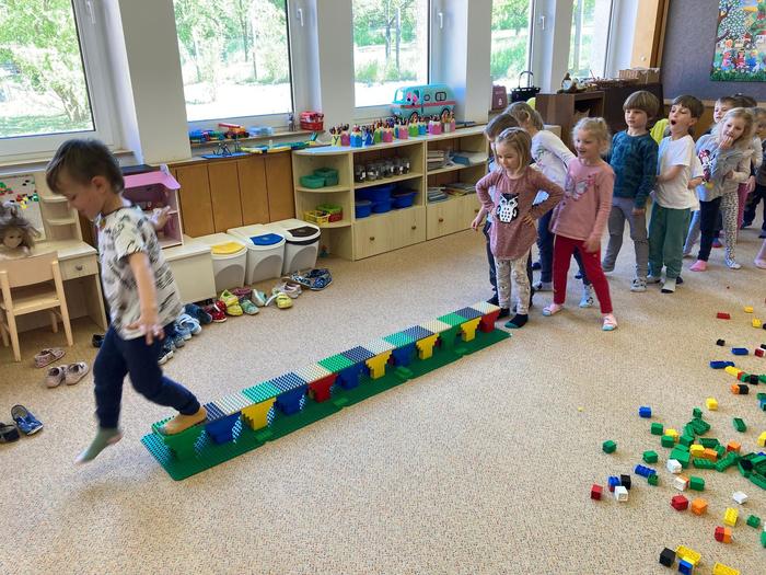 Děti si nejdříve poslechly legendu o stavbě Karlova mostu, poté se seznámily s různými druhy mostů, pomocí obrázkových materiálů. A pak začala ta pravá zábava. Prvním úkolem bylo z kostek Lega postavit libovolný most. Pomocí jednoduchého pokusu děti zjistily, že žádný z postavených mostů není dost stabilní, aby vydržel. Tak přišel na řadu druhý úkol – aby byl most pevný, musí mít správné pilíře. Děti ve skupinách i samostatně z kostek sestavovaly pilíře podle návodu a poté postavily dlouhý most. Pak už zbývalo jediné, a to vyzkoušet, jestli všichni postupovali správně. Postupně přes most přešly všechny děti a nakonec i paní učitelka. Most vydržel, děti tedy zvládly úkol na jedničku.