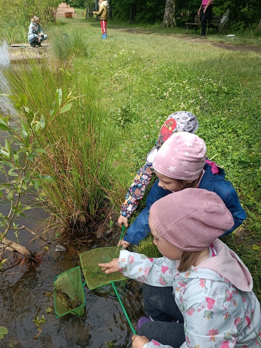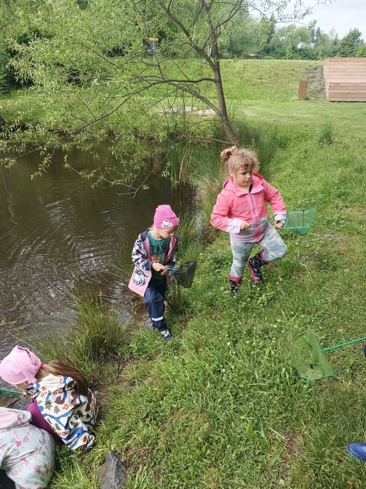 Hned po příchodu děti přivítalo kuňkání žab z nedalekého jezírka. Paní lektorka měla pro děti připravený bohatý program. Hravou formou se děti seznámily s živočichy a rostlinami, které se vyskytují v prostředí u rybníka a v něm. Zpestřením pro děti byl lov a pozorování vodních bezobratlých živočichů.