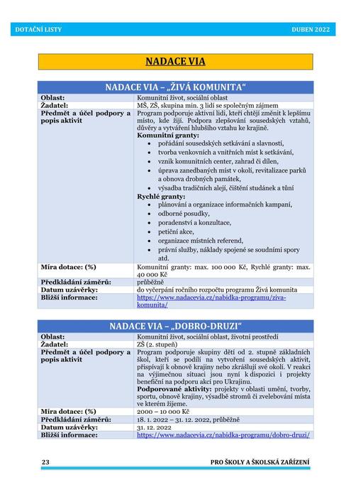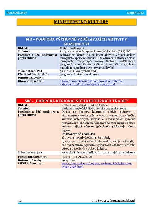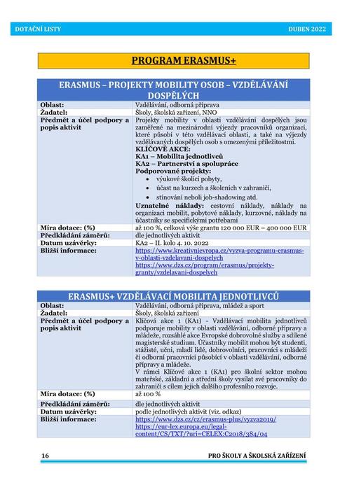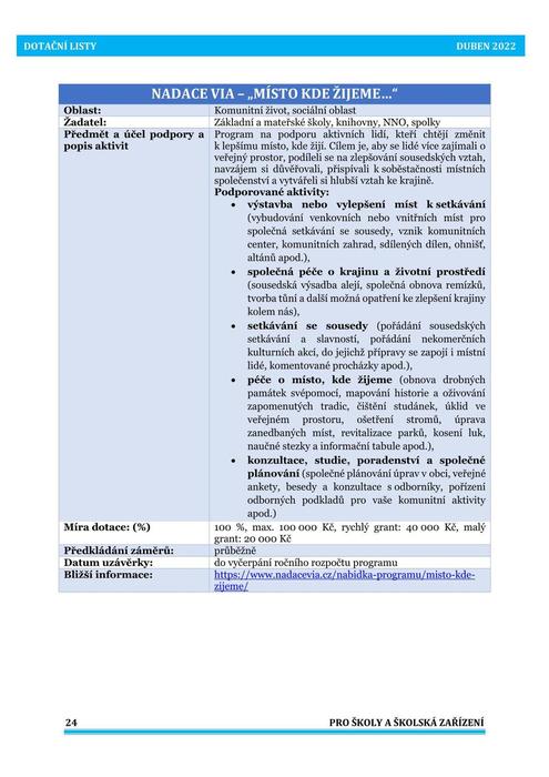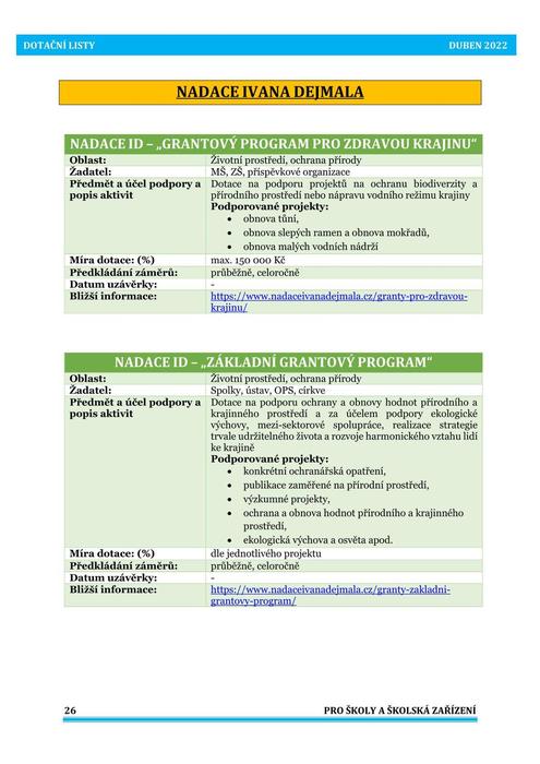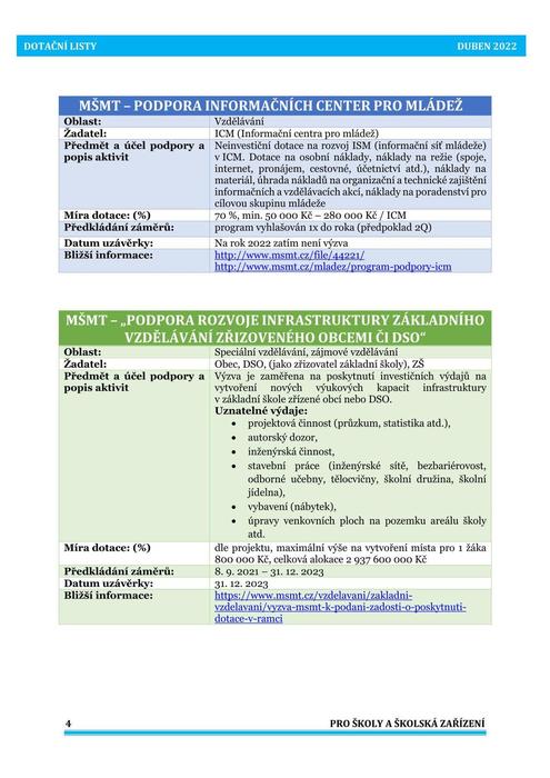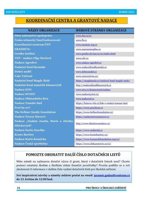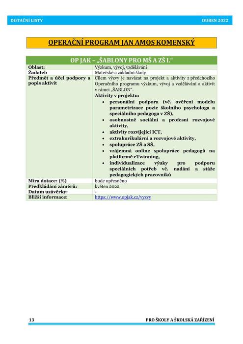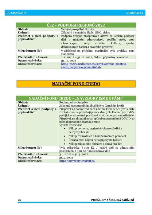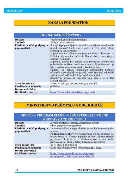 V minulém roce vypsalo Ministerstvo životního prostředí výzvu č. 12/2021, ze které mohou žadatelé z řad mateřských a základních škol zřizovanými obcemi požádat o dotaci na energetické úspory budovy školy. Více najdete v dubnových Dotačních listech pro školy.