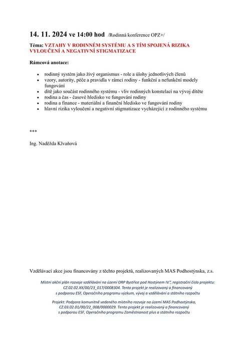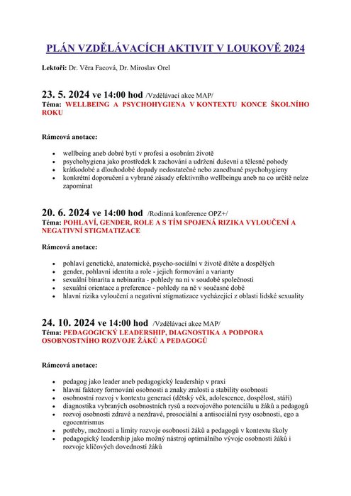 Úvod > Projekty MAS > OPZ+ > Aktuality OPZ+ > NOVÝ PLÁN VZDĚLÁVACÍCH AKCÍ V LOUKOVĚ 2024