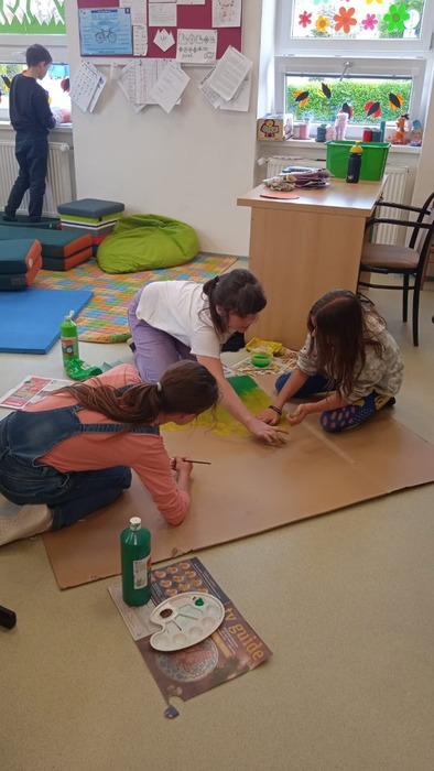 Děti protáhly svá těla a zasportovaly si v tělocvičně. Nezapomnělo se také na odpočinek v knihovně nad knížkami a při besedě s ilustrátorkou Markétou Vydrovou. Když se počasí umoudřilo, na hřišti si děti zahrály např. vlajky.