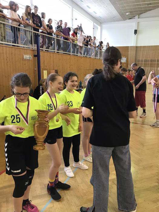 6.5. 2024 se žákyně 4. a 5. ročníku zúčastnily turnaje v miniházené. Za mohutného povzbuzování nejen svých spolužáků a spolužaček ze třídy, ale i žáků z Chvalčova, se našim dívkám podařilo obhájit loňské prvenství a domů si opět přivezly 1. místo a putovní pohár. Turnajem dívky prošly bez porážky a Lili s Eliškou dokonce nastřílely nejvíce branek v turnaji (49 a 31).